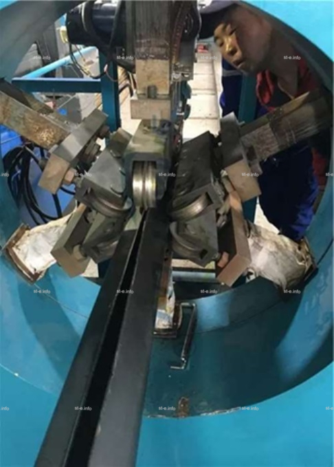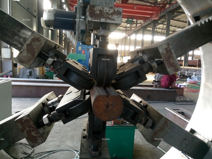 Хомуты на движущемся устройстве тяги зажимают конец изделия, после того, как комплекс приводится в действие, изделие начнет двигаться равномерно от малого конца к большому концу. Сварочный автомат осуществляет автоматическую дуговую сварку под флюсом и формирует прочный аккуратный шов.