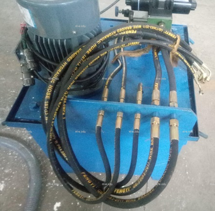Независимая гидравлическая насосная станция к главному подъемнику через резиновые маслопроводы высокого давления.